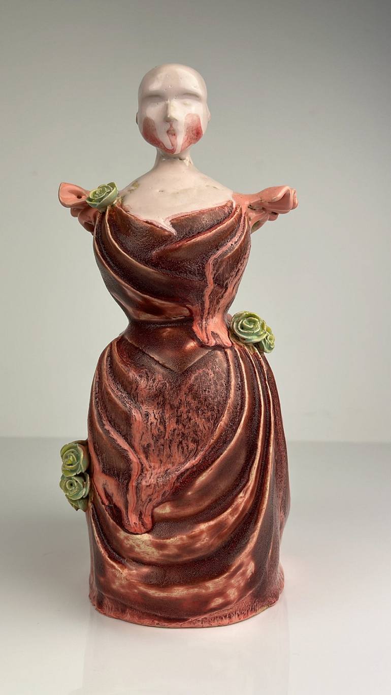 Kiara is a figurine dedicated to the beauty of the solid feminine silhouette inspired by the dresses of La belle epoque. The beauty of the glaze and the colors is natural and the expression of the naked head is inspired by the art of making dolls and mythological women kentaver.