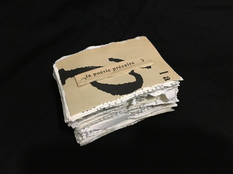 La Poésie Précaire - The Precarious Poetry was originally a book of the same title. I found it discarded and rejected on the streets of Paris. I love the title of the book and wanted to create a artwork using the pages from the book. I decided to tear the pages and stack and glue them together, re...