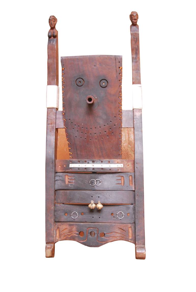 The observation of socio-political developments in the world, and especially on the African continent, has made me more critical, direct, and truthful in my artistic work. My series of paintings, sculptures and installations entitled “One-eyed” highlights the hidden side of the continent that is exemplified by the narrow-mindedness of the political elite who hinder the development of the continent. At the same time, I seek to rationalize the euro-centric perspective of Africa. My contemporary works, which integrate materials rich in the values, cultures and traditions of our ancestors, are intimate and surprising. In my works I utilize objects that had been deemed to have reached the end of their usefulness. I give them new shapes and forms, and in so doing give these objects a new life which is theirs. This can be seen in my sculpture titled “Without my spoon”.