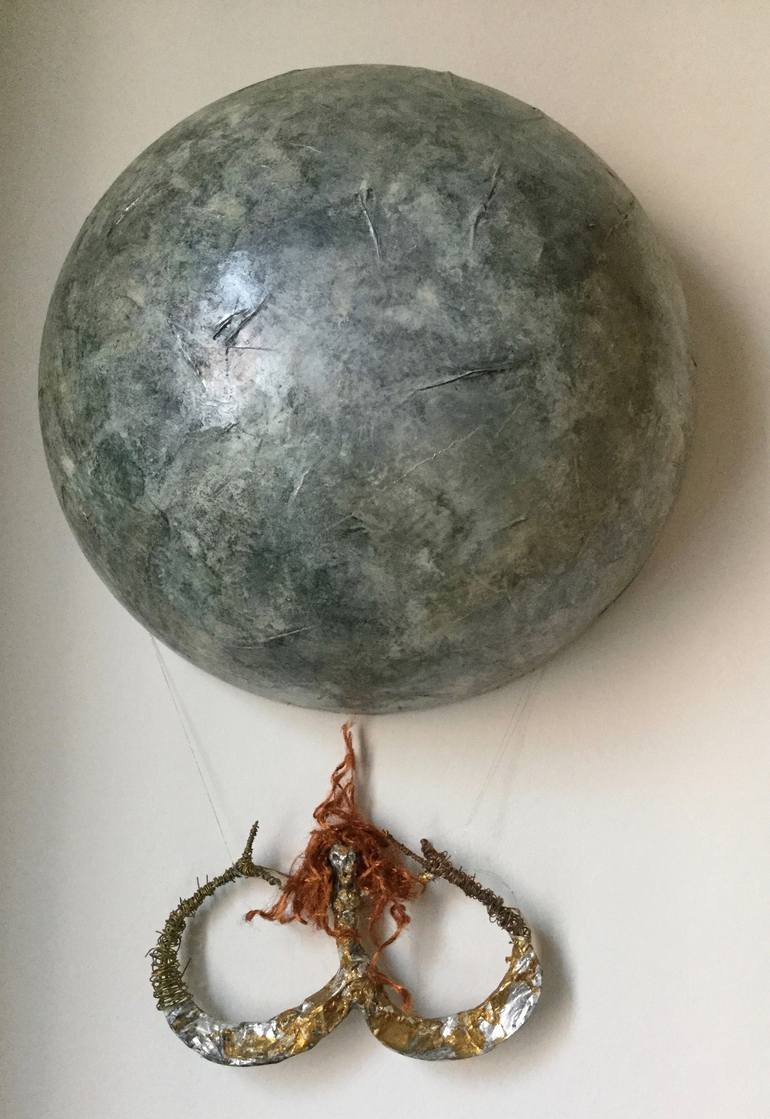 This artwork is part of a serie inspired by the hot air balloon that symbolize freedom to me. I combine painting and sculpture in a surrealistic and simbolic way. The balloon simbolized the 5 elements: air, fire, water, hearth and ether. I used to draw and paint on pieces of tissue paper that I past...