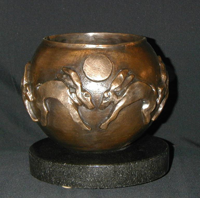 “MOONDANCE”, 8 1/2X8 1/2, BRONZE , 1/1, six rabbits dance under the light of the full moon