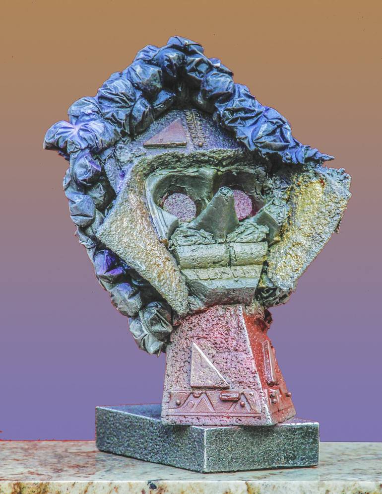 I have an ambitious approach to life ... and to art ... make something happen every day ... but most of all have fun doing it! A sculptor first, and now working in 2D, I do my best to do just that. Presented here are examples of some of my work. •• My sculpture runs the gamut from abstract, to figurative, to architectural. The materials and methods used are diverse ... from figures modeled in clay or wax, then cast in pewter or bronze ... to aluminum maquettes (produced by evaporative pattern casting) which serve as the 3D blueprints for the pieces that are enlarged and fabricated from sheet metal of all kinds. •• My 2D pieces range from abstract to figurative. You’ll find Originals done in oils or acrylic, one-of-a-kind monotypes, collages, mixed media paintings, and more ... I love working in all mediums. Some of my 2D work may be available as reproductions on this site. ••• MY FASCINATION WITH SCIENCE FICTION & MAKE BELIEVE - When I was in second grade, television was new and the hottest thing. The "Adventures of Flash Gordon" was my favorite program. There was only one kid in the neighborhood who had a TV. We, all the kids, gathered at his house for every episode. I was a huge fan of the characters. Flash was cool and my hero. Dale Arden was OK but Princess Aura was way cooler because she was naughty. Ming The Mercilous was very interesting. But Dr. Zarkov and his super duper telescope - that could see into time forwards and backwards, far and near - was the star of the show for me. The spaceship was really hoakey. You could see the wire that it was traveling on and the little puffs of smoke coming out of it were a joke, even for me. But the concept of the show was magical. Also at that time there were radio shows about space travel and aliens and monsters. I would listen to those shows with my grandfather as I sat on the floor next to the big wooden box radio so I could get the full impact of the sounds. •• These shows inspired me to draw spaceships, mostly "new and improved" versions of Flash's ship. I taped them all over my bedroom walls. At night I would travel with Flash. We would go to distant parts of the Universe and explore ancient ruins - like what I saw in National Geographic when I was not looking at the bare-breasted girls of exotic cultures. (I think artists and sculptors, are to a large part, voyeurs.) Those memories pop up in my art over and over. •• Faces also intrigue and inspire me.
