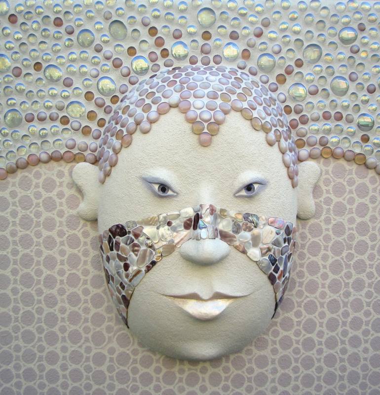 Wood-mâché, Glass Mosaic, Mother of Pearl, Acrylic on Wood board