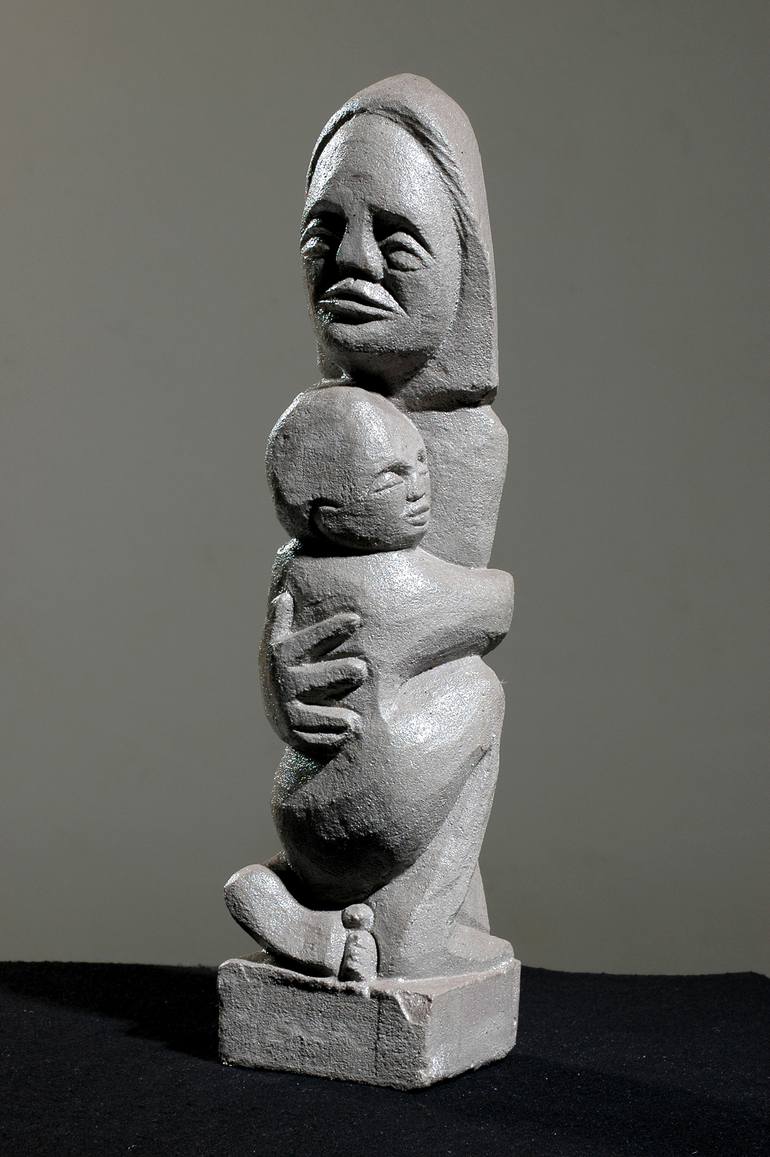 "Motherhood." Pigmented cement sculpture of the series "Figurines".