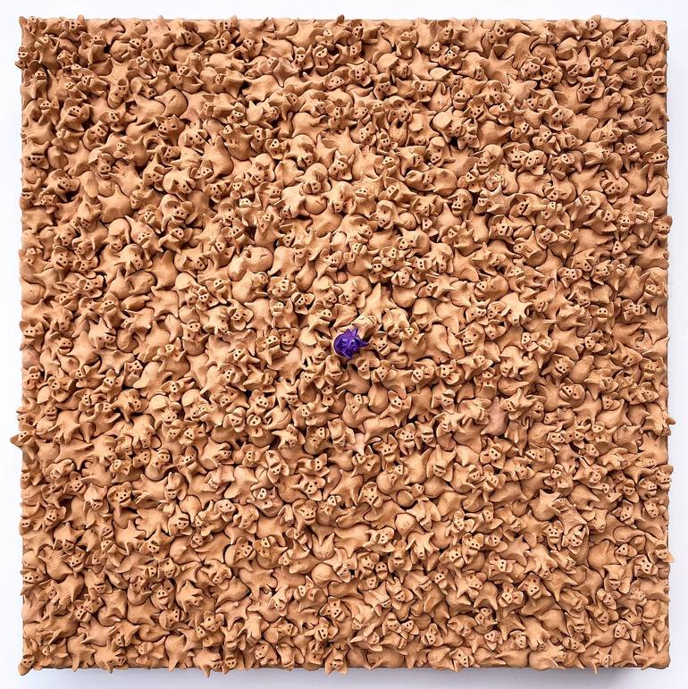 Seunghwui Koo creates her works drawing inspiration from the daily happenings and intricate moments of her life in NYC. Her work is a commentary on the lives of New Yorkers as she has witnessed. She was born in South Korea, where she first had the idea of combining the pig’s head and human body. The significance of the pig’s head lies in the different symbolic meanings from the Eastern and Western cultures. Good fortune (Eastern) and greed (Western), two very different connotations of the pig, are themes that are a part of her works. She uses resin, acrylic, plaster, clay, and mixed media to create her works. She is one of the artists in the Chashama organization in NYC.