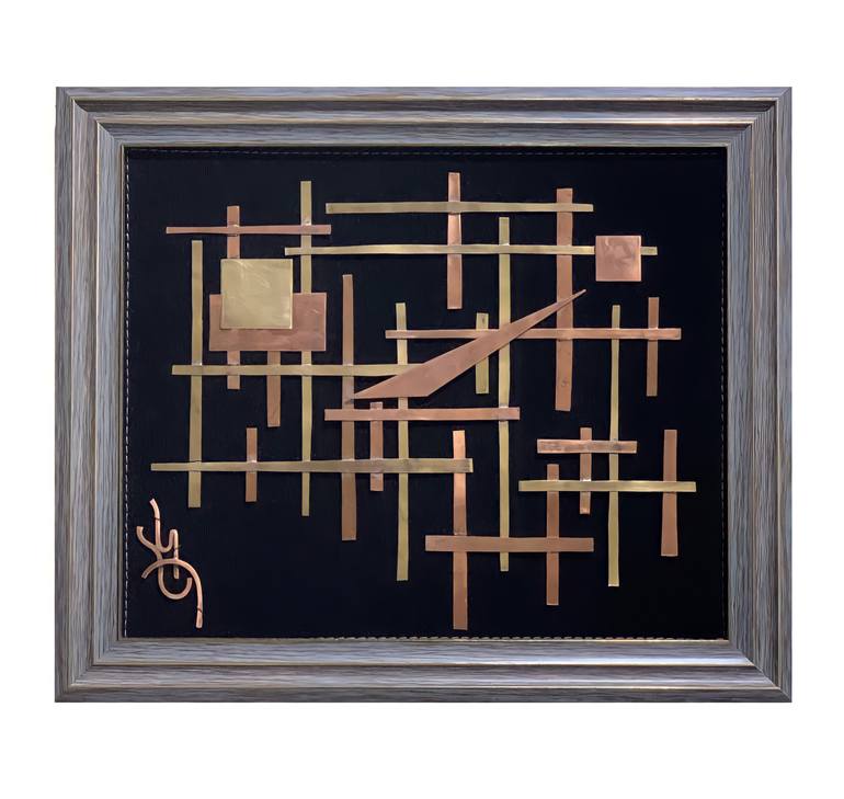 This is The Modern Pano made with copper, brass on a artificial leather surface. It's one of many unique pieces of art created by the artist Narek Petrosyan. It's a beautiful art piece that can be hung in your living room, dining room, guest room, entryway and the list goes on. The dimensions are 2...