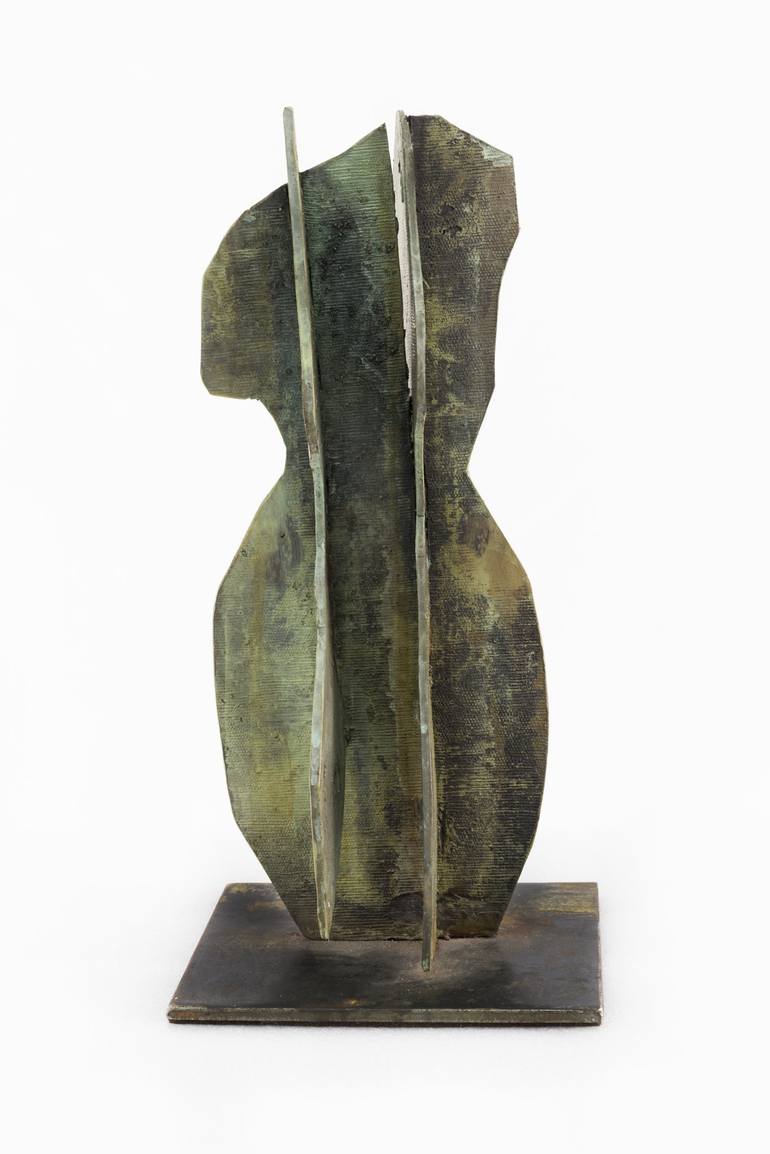 This sculpture is a woman's body, a torso and belongs to my series of "Busts and Torsos". It is made of patinated bronze on iron. It is a minimalist and geometric work, highlighting shapes and lines. The sculpture measures 35 x 17 x 14 cm and weighs 3.5 kg. Shipped in a reinforced crate.