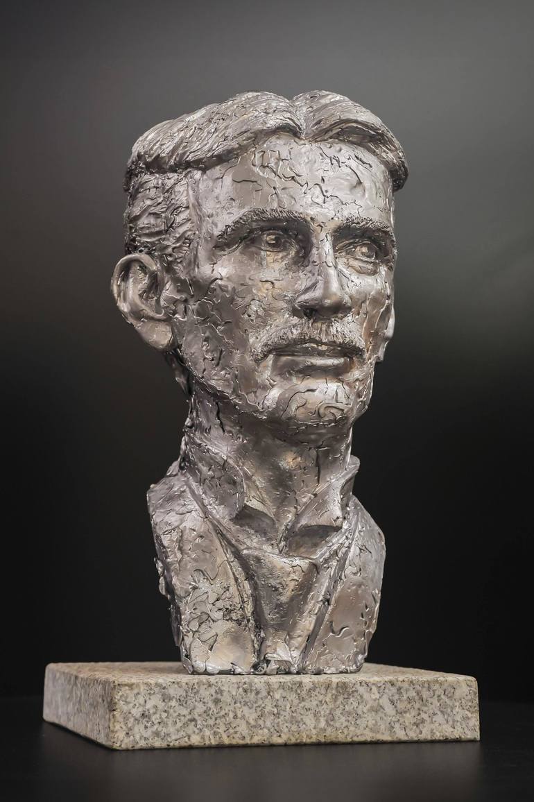 The bust of Nikola Tesla serves as a depiction of this important scientist and inventor. It is a way to appreciate his contribution to science and technology. The bust is a work of art that aims to portray Tesla as an intelligent and serious man. The bust of Nikola Tesla is suitable as a decorat...