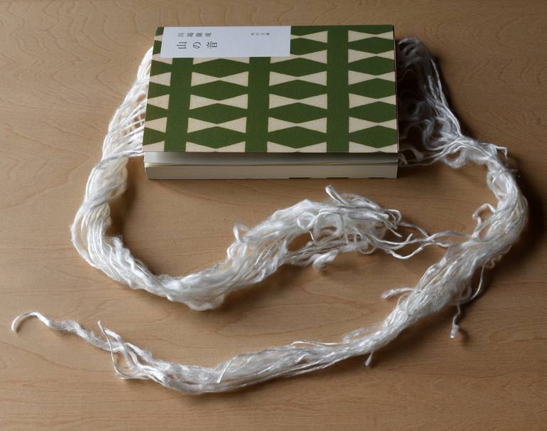 Material: Japanese book, silk thread Size: w 18cm x h 15cm (w 7.09 x h 5.90) Stitch all over the page of Japanese book with silk thread. Covering page which has a story and room.