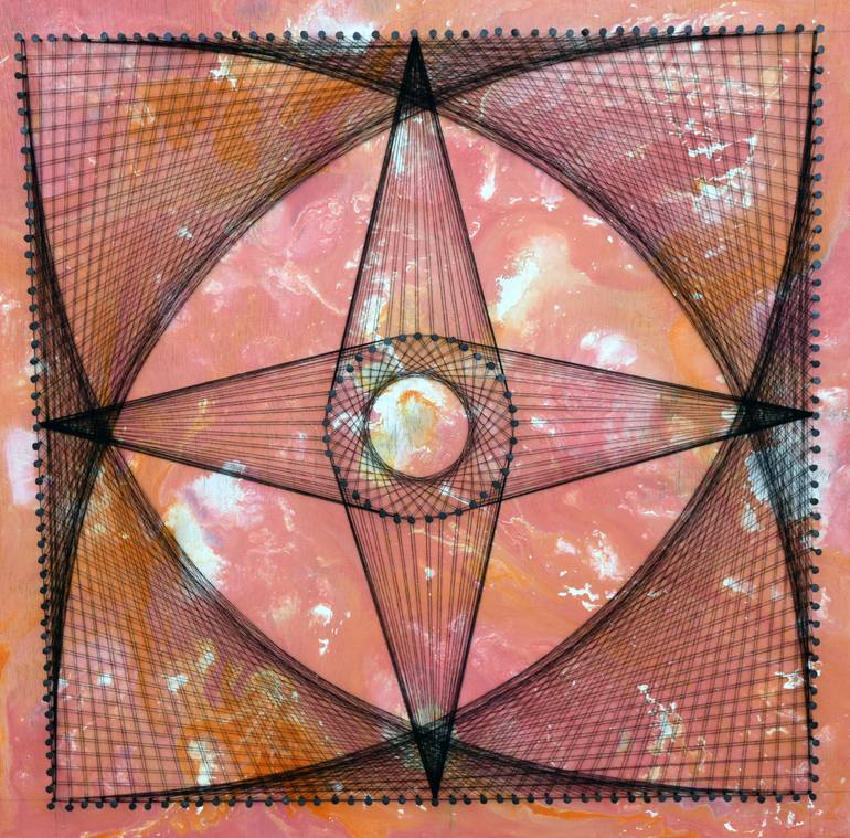 This piece comes box framed with glass, framed in a white wooden frame. I like creating geometrical patterns through various mediums. I like them to be precise in terms of their shape and construction. Using threads and nails has been one of the many creative ways I could use to make geometrical sha...