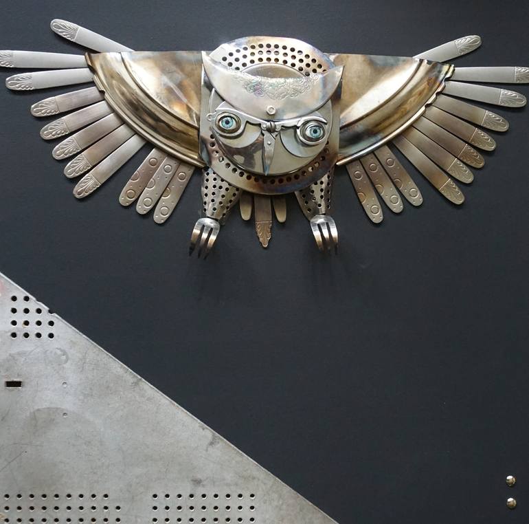 "To me, an artist looks like a myth creature, weird adept who actualizes his spiritual energy in the way known to himself alone and creates a new object embracing its generosity of diversity and fullness of serenity, matter and spirit, the truth of life, and the elements of Eternity within." These Algirdas Steponavicius' s thoughts perfectly describe Vladimiras Nikonovas and his works. Constant search of connection between inner and outer, shape and content, improvisational structures, and strictly built rational order brings the artist V. Nikonovas' s works closer to the synonym of reality where the artist touches a material infusing a soul to it: created birds, fish, and myth creatures come to life. Oeuvre- is a ritual of resurrection, or, according to Antonio Tapies "an artist- is a shaman who recognizes the true matter and injects life into it". Not only the creature resurrected from old mass production object waste is important to V. Nikonovas, but also the surface which the assemblage appears on. Metatarsus of assemblage namely highlights the designed creatures which mostly peep out from mysterious, restrained profundity (creator's spiritual subconsciousness), simultaneously emphasizing its cold metallic sheen. This grand gloss being perhaps paradoxical to its nature, confirms A. Tapies proposition that artists are capable of injecting life into matter.