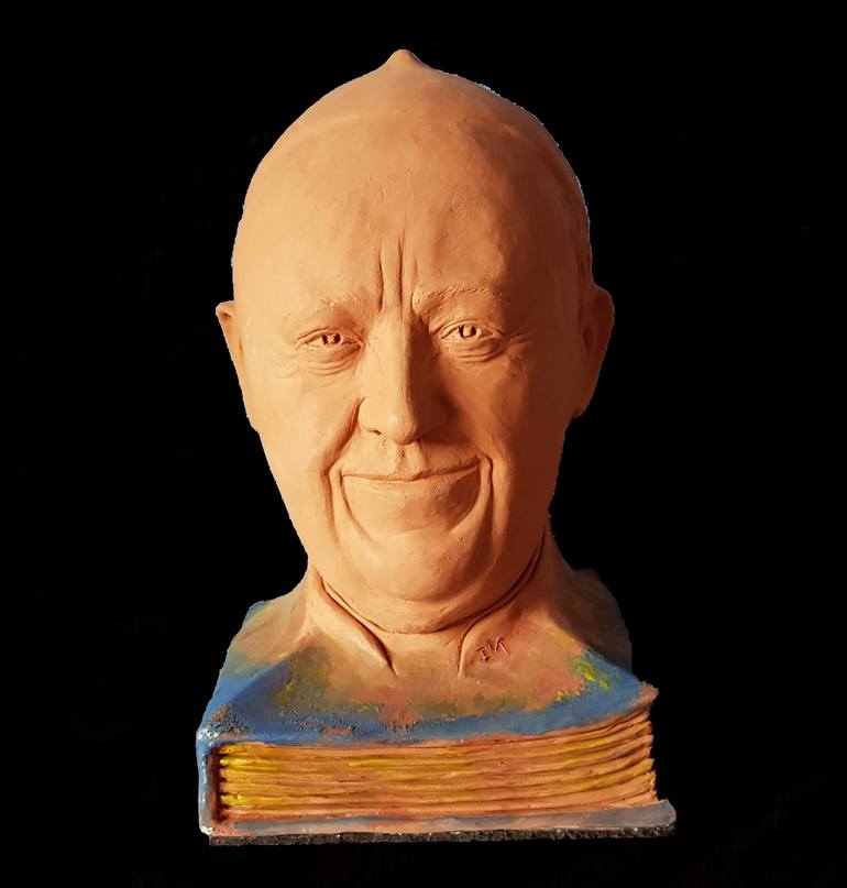 E' una scultura in terracotta. E' rappresentato il ritratto di papa Francesco poggiato su un libro. La testa non è a tuttotondo ma è rappresentato solo la parte anteriore. Il volto è realistico, ma la composizione nell'insieme è surrealista.