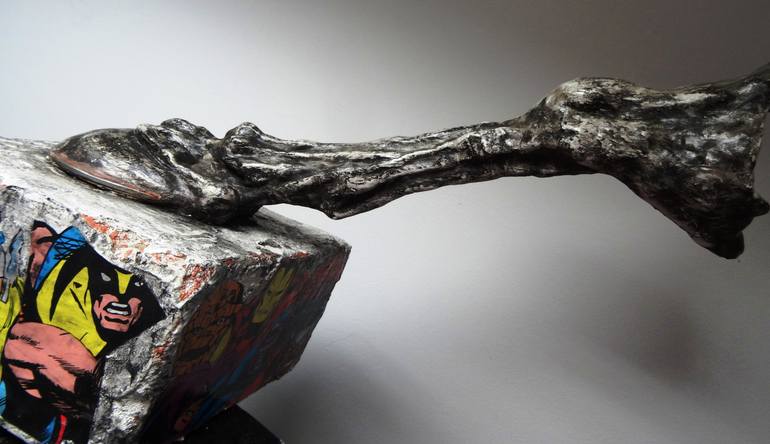 "Power 2" sculpture dim:50x60x25 cm material: aerated concrete,modelling mass-das masa,paper,grout,acrylic,charcoal,polish...