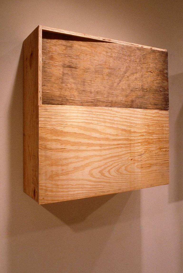Pumbeditha is one of eight wall sculptures, 35 " x 35" x 11" each, in this Talmudic Academies Installation that can be organized in various ways with a varying number of units. Each piece is composed of two kinds of plywood - weathered and new. The dividing line between them is based on the Renaissa...