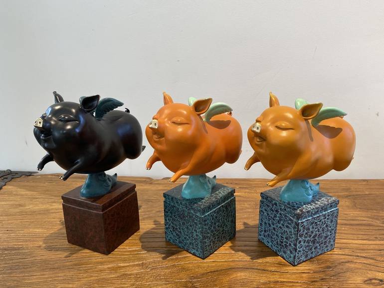 A lovely and peaceful flying pig. It means that everything is going in the right direction. This works is a limited edition limited edition of 999 pieces of the artist's autographs.