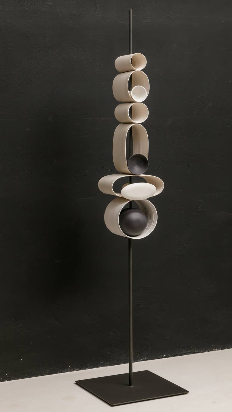These sculptures belong to the family called Sequences. It is a series of elements that follow one another and relate to each other, since they all start from the same cylindrical shape made on the lathe. In some cases they are deformed, creating ellipses of different sizes. Inside there are some pi...