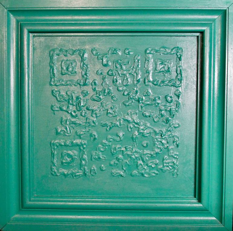 This sculpture/painting is the realization of the QR Code for the words, "Shakespeare & Company", the famous bookstore founded and managed by Sylvia Beach in Paris. The code is realized by use of modeling paste, followed by primer paint, then a coat of Peridot-colored paint. The finish color is re...