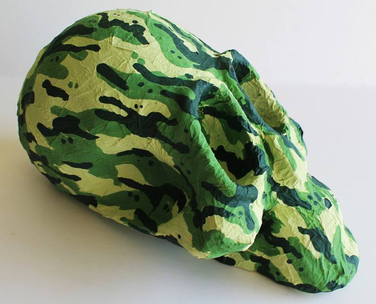 Paper mache manual graphics varnished Good skull with eyes wide open hand painted varnished