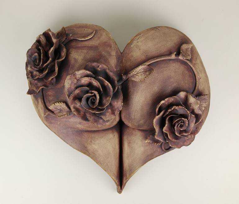 The title suggests to wake up and smell the roses, which is about appreciating what you have! Working with a new bottom cast, this is the first of a new style bottom. This cheeky, erotic sculpture is made of stoneware clay, it’s a wall hanging sculpture with an iron oxide wash. A bottom in a heart s...