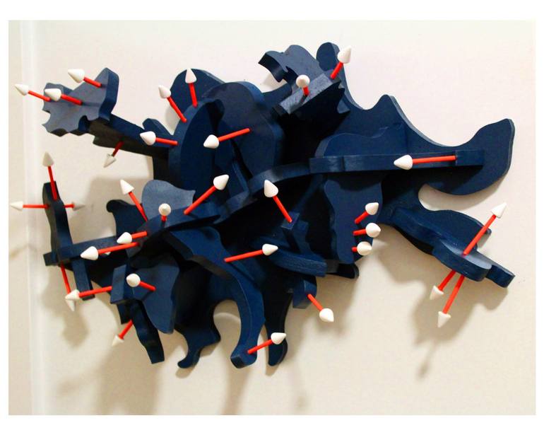 The story of Saint Sebastian inspired this work. This work was completed before the current epidemic but references similar up coming super viruses and their survivors. The green represents the virus while the arrows in this case represent the cure.