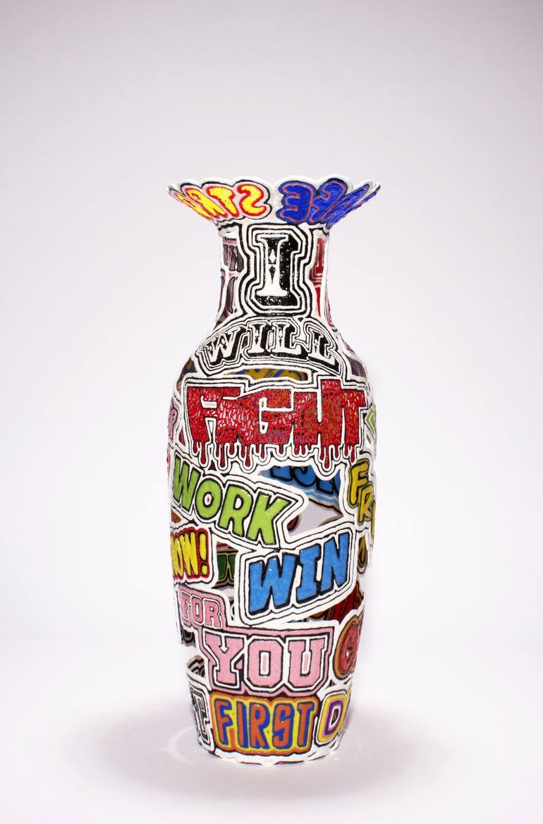 Fascinated by news media, bold statements, words and promises. Sometimes clear in your face. Sometimes anonymous. This trumpet vase is one of the two vases I made during the presidential election’s race Clinton vs Trump in 2016, U.S.A. This Trump vase is based on words if found in the transcript ...