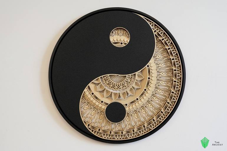 Our taijitu is a perfect example of the perfect balance of two energies, Yin and Yang. Crafted with 7 layers of poplar plywood, this piece of art is a carefully designed representation of the concept of duality forming a whole. The black and white colors represent two opposite forces which are inter...