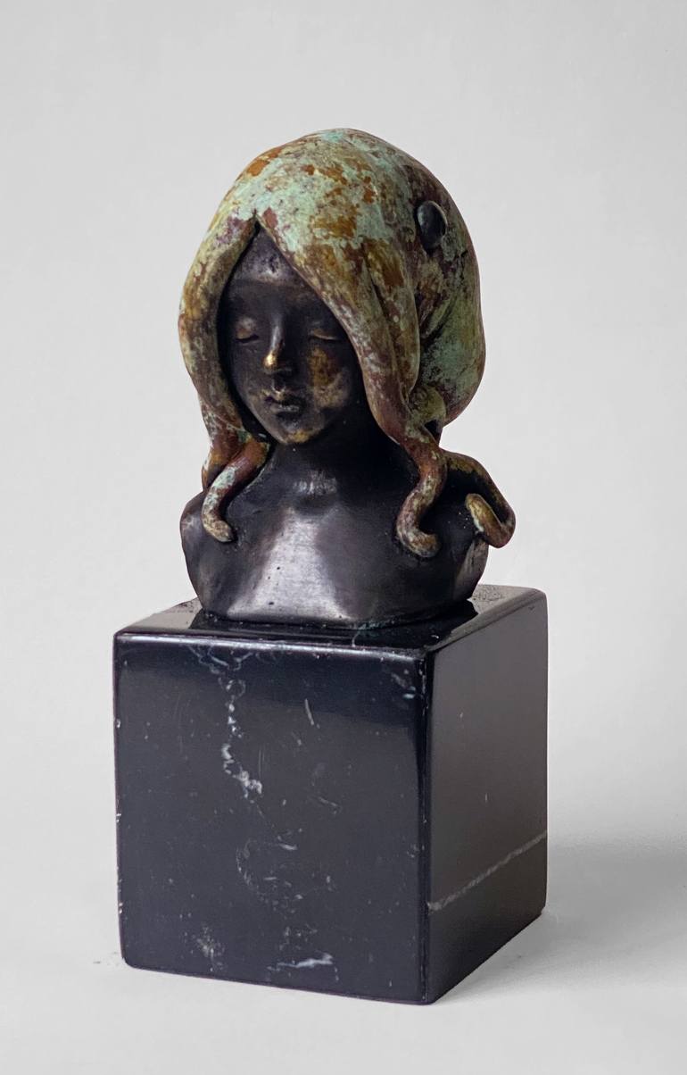 Tangled Girl is a small woman bronce bust with octopus hair. Francesca is intrigued by octopuses, they are such amazing creatures, they can squeeze themselves into tiny holes, change shape and color, they are a great metaphor for transformation, change and self challenging. Francesca has different p...