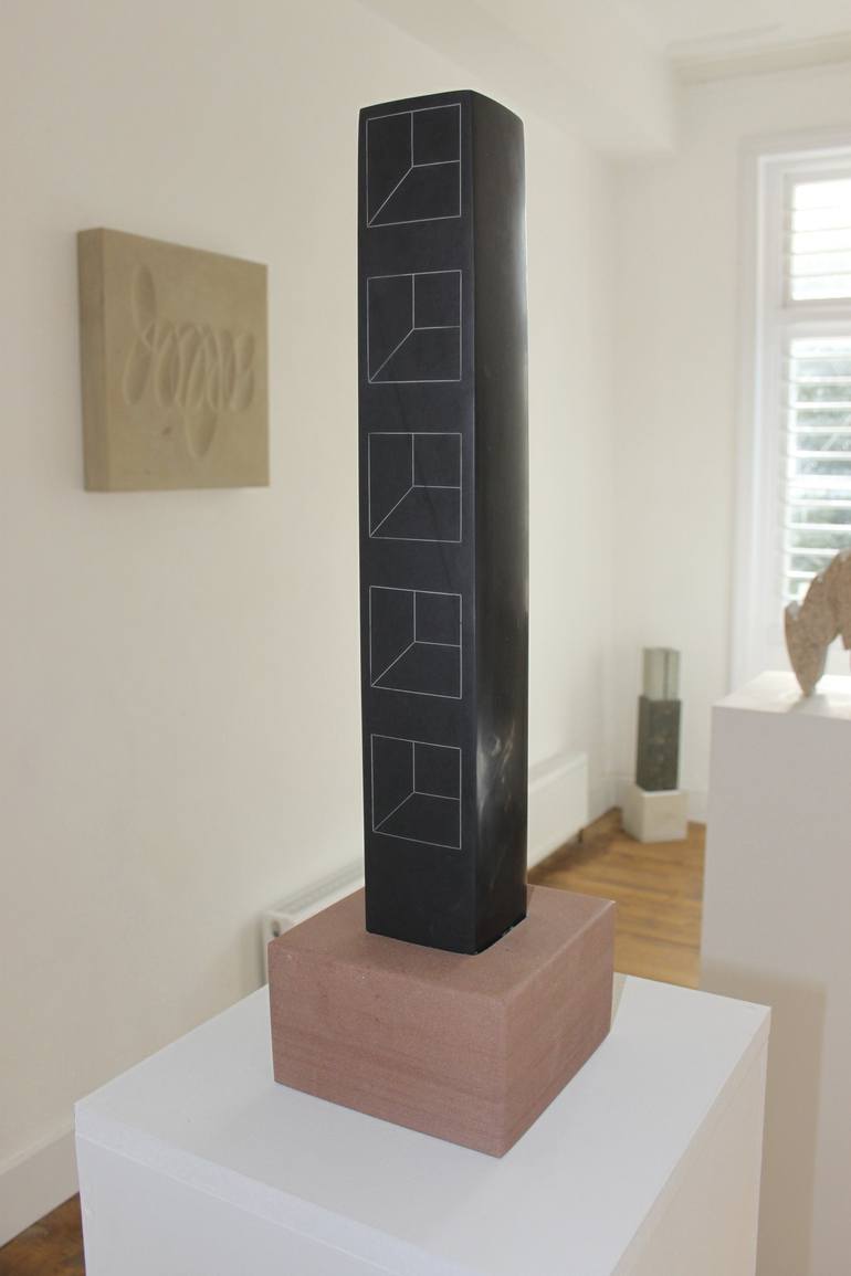 The Grail Castle Scribed and polished slate with entasis.Red sandstone plinth.
