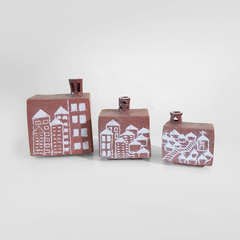 The Trapped space (3pcs Set) Pottery The art work material is she's hand made ceramic. And baked in an electric ceramic kiln over 1200 Celsius in a modern method. Made in Jeju Island, South Korea 2019 Bongsook Paik