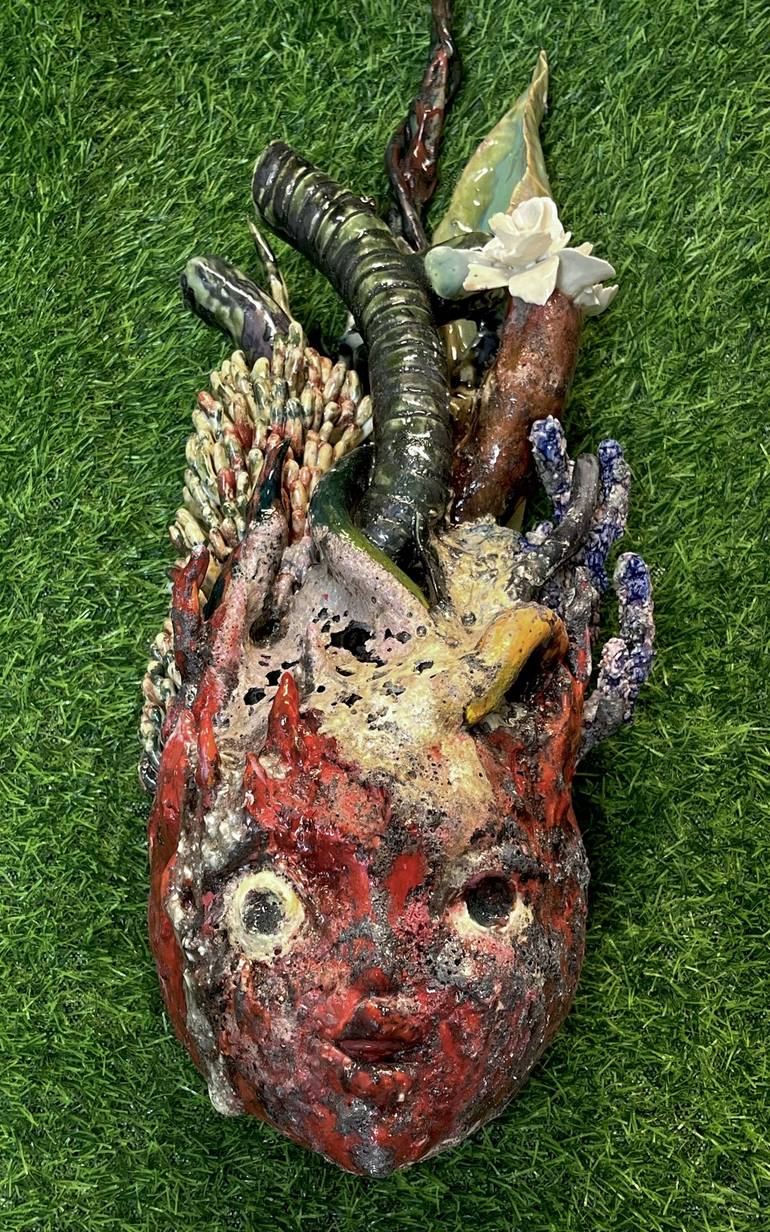 My name is Jean Yang, I'm ceremicist in Korea and usually tell about the desire. This piece is one of my desire series, and it has a short story. It's a fairy tale name . The tale starts like this, "There is the red ○○ in the forest. When you take a bite of it, it fills all of your desire. So people...