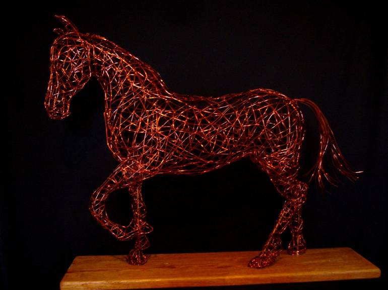 This horse is made out of copper wire with a wooden stand. Copper is wonderful to work with, the feel and the look is so beautiful. The copper will change the color over time which makes it also very speacial. I started making horses out of an interest for this beautiful animal and I love studing h...