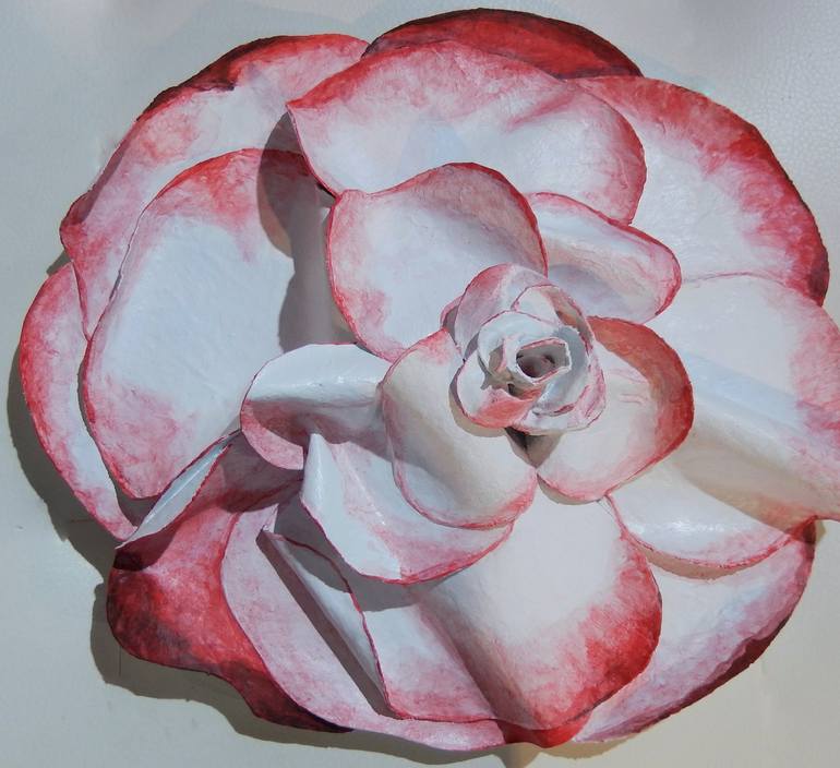 A touch of beauty and dimension of a layered flower wall décor. It can be hung or place on an easel, made of canvas of individual petals to create the white flower. Easy to hang in any direction. Enjoy!!