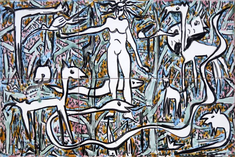This composition of several tiles to form a small mural shows us a way of seeing the painting in a very original way in which each tile is combined and corresponds perfectly with the others as a whole. This painting work is made in a special ceramic kiln with ceramic colors on tiles at very high tem...