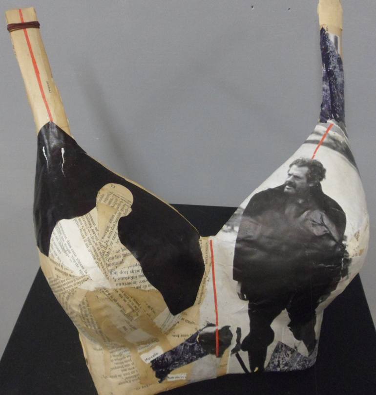 sculpture collage old novel pages + cinema documents stands by itself very delicate work tribute to Marcello Mastroianni, brillant comedian and women's lover........