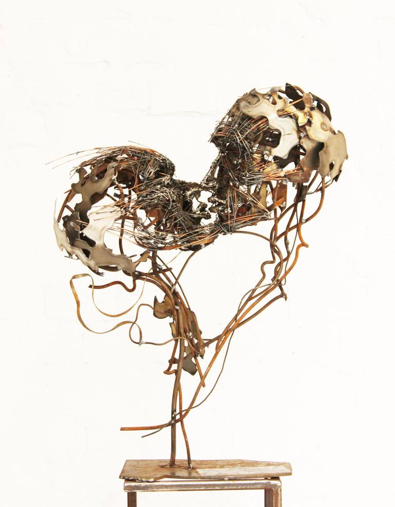 The kiss inspired the creation of the sculpture. The viewer feels tenderness and desire. Strong, brutal metal with fine lines and deep feeling.