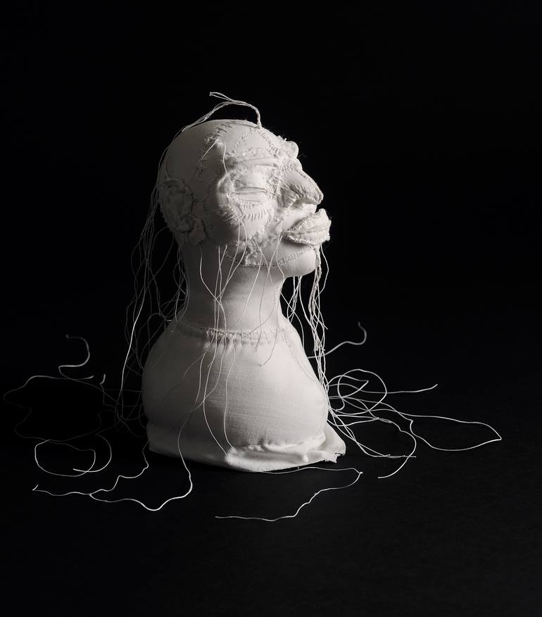 sculpture textile, réalisée en métis et lin recyclés, portrait blanc illustrant l'état méditatif, tapisserie et broderie à, la main. en imaginant ces âmes, je chatouille une question existentielle qui touche chacun de nous: qu'advient il de nous lorsque nos battements s'arrêtent? Notre corps, notre...