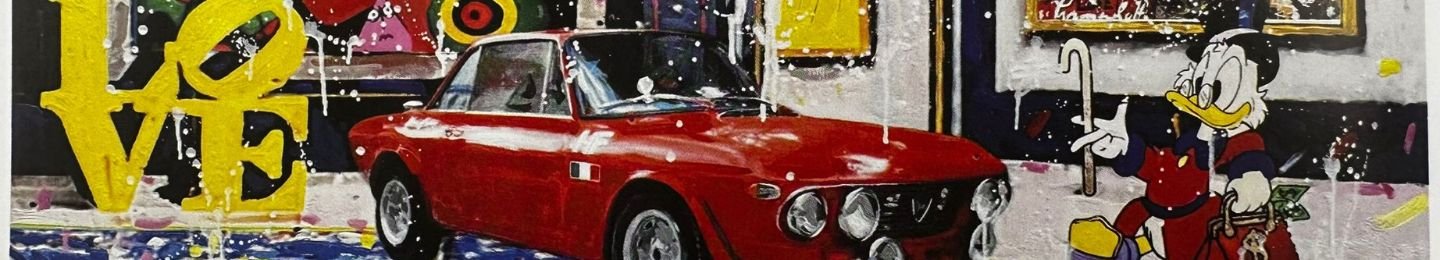 Le tele di Renè (ovviamente è un nome d’arte) soddisfano pienamente il nostro desiderio di serenità e ci conducono verso una confort zone dello spirito che le rende assai gradite al pubblico: l’autore non è certo un outsider, ha alle spalle una lunga carriera, ma negli ultimi anni ha sperimentato con successo una nuova formula compositiva che si basa sulla sovrapposizione di varie immagini iconiche tratte dal mondo dell’arte ma anche dalla cinematografia, dal fumetto e dalla pubblicità. Il risultato è una straordinaria esplosione di energia che si manifesta attraverso l’uso di colori assai vivaci.