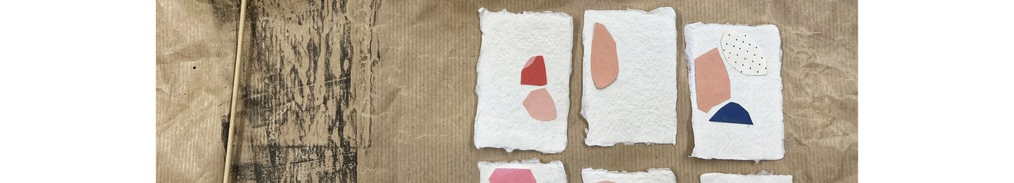 Her work is a playful exploration of shape and colour with a particular fondness for found papers. A discarded, happened upon, piece of paper makes her heart sing and can inspire a whole body of work.