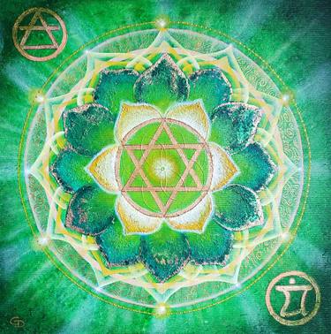I paint sacred geometry, mandalas, and energy paintings, capturing on canvas the colours and forms that come to me in flow.