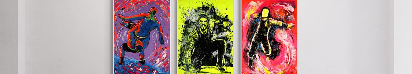 As an artist, I'm captivated by the human body, its strength, and the essence of movement. Drawing inspiration from pro wrestling, superhero comics, and 90s martial arts movies, I freeze moments of raw energy and power in my artwork while also revealing the vulnerability behind these strong bodies.