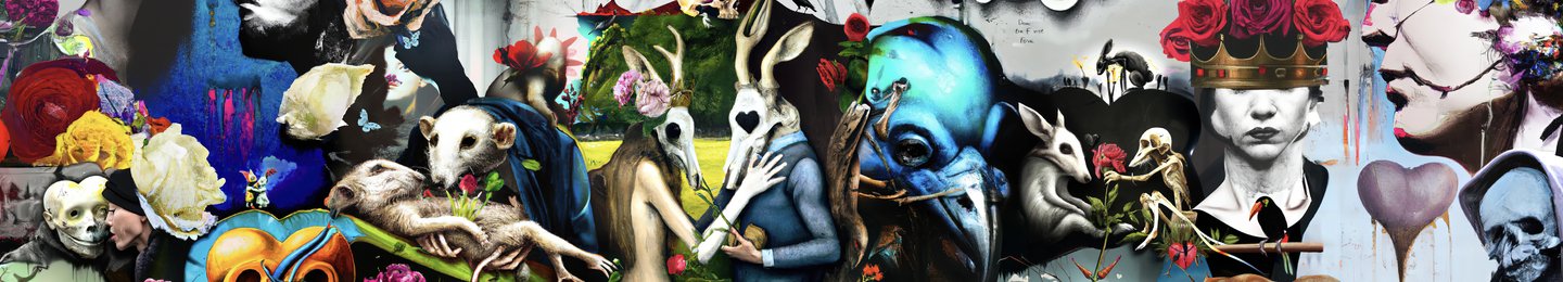 Wubbushi creates next-generation collages comprised exclusively of AI-generated images, merged into a cohesive whole by application of a novel computer-assisted fusion technique.
