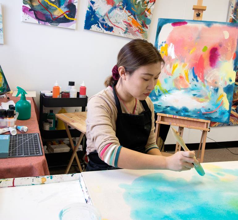 I am an accomplished artist with a wealth of education and experience in the field. My love for art began at a young age. It only continued to grow as I received formal education, including earning dual BFA degrees from Jilin University in China and West Chester University of Pennsylvania. My extensive career experience includes serving as a senior graphic designer and brand manager at 4A Advertising Agencies and tech giants in China, where I honed my skills in creating imagery characters and advertisement scripts using digital tools. Despite this, I always felt drawn to the traditional art of painting. This led me to pursue further education in the field and to study painting in the US, where I am now focused on developing my favorite abstract style, infused with my personal experiences and unique perspective.